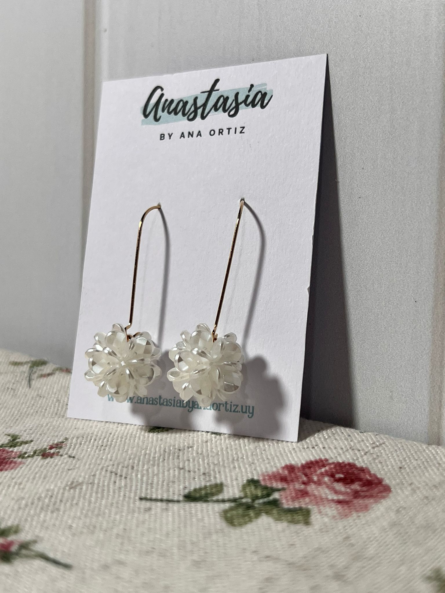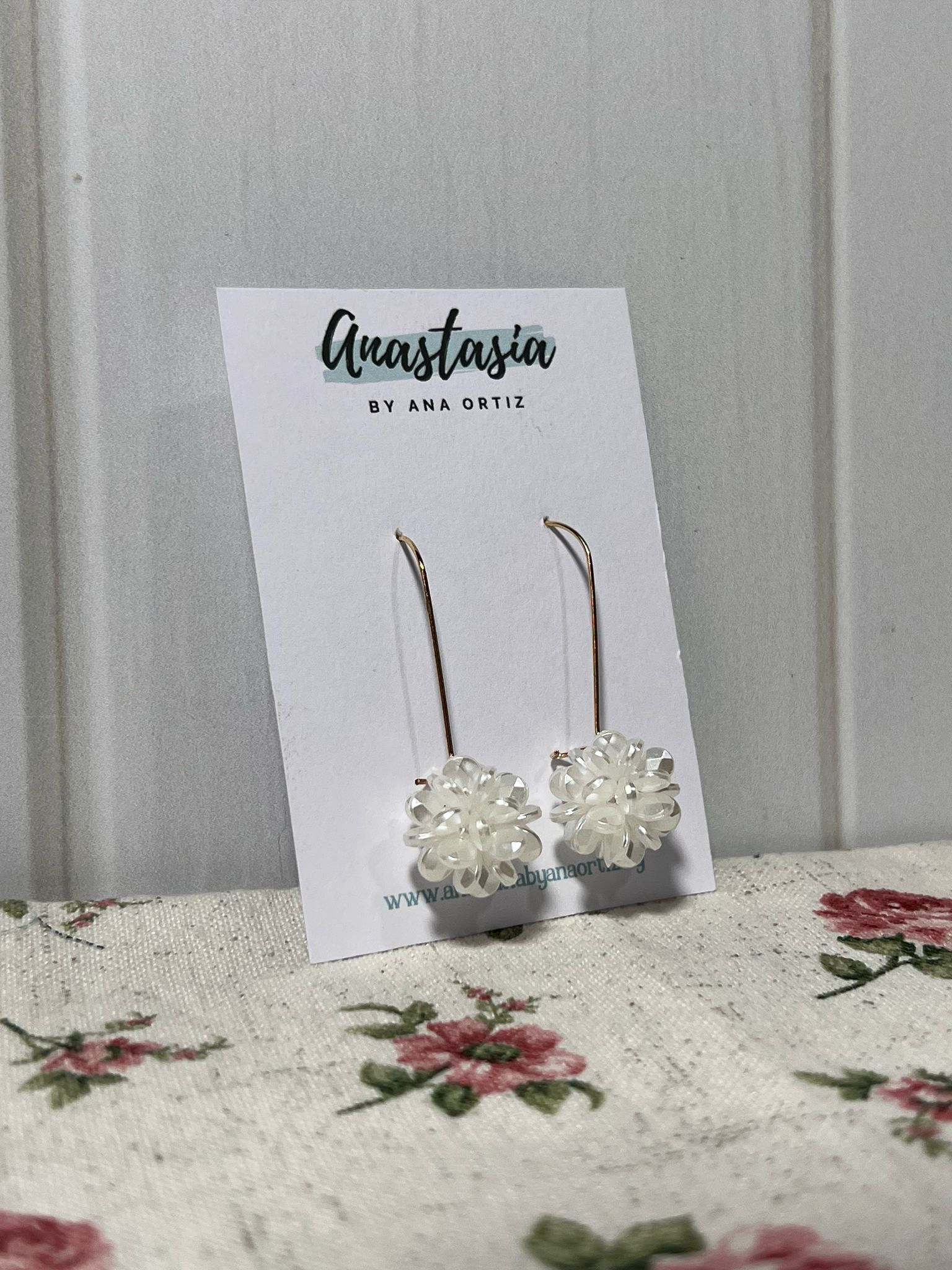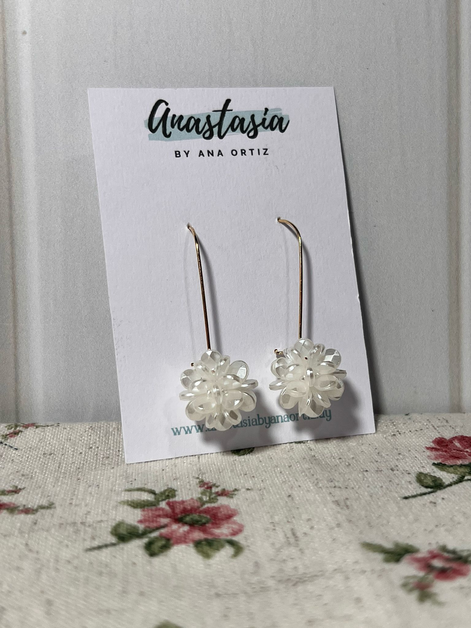 Caravanas larguitas flores blancas.