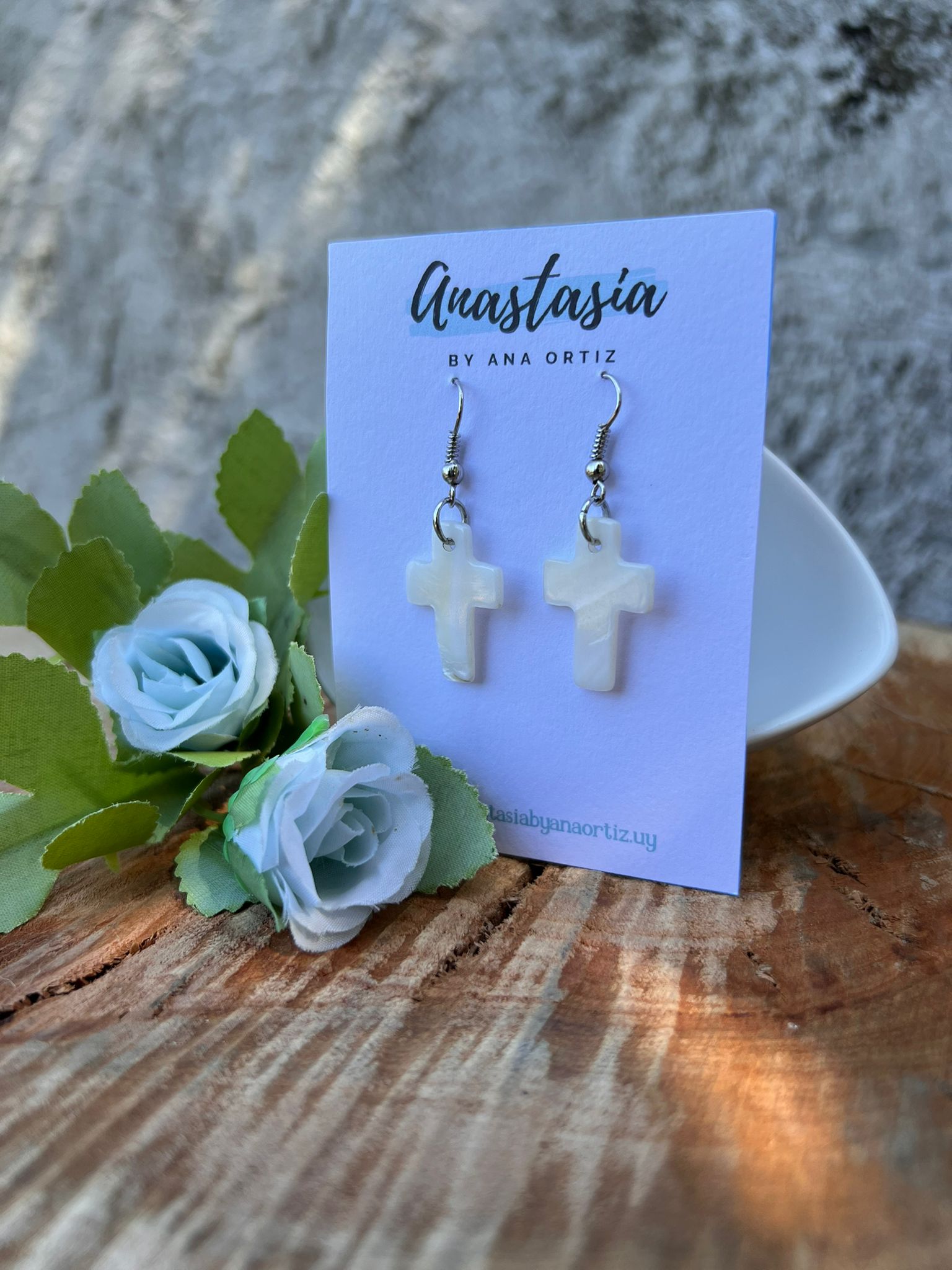 Caravanas de acero y cruz de nácar. Livianas y hermosas. UNICAS
