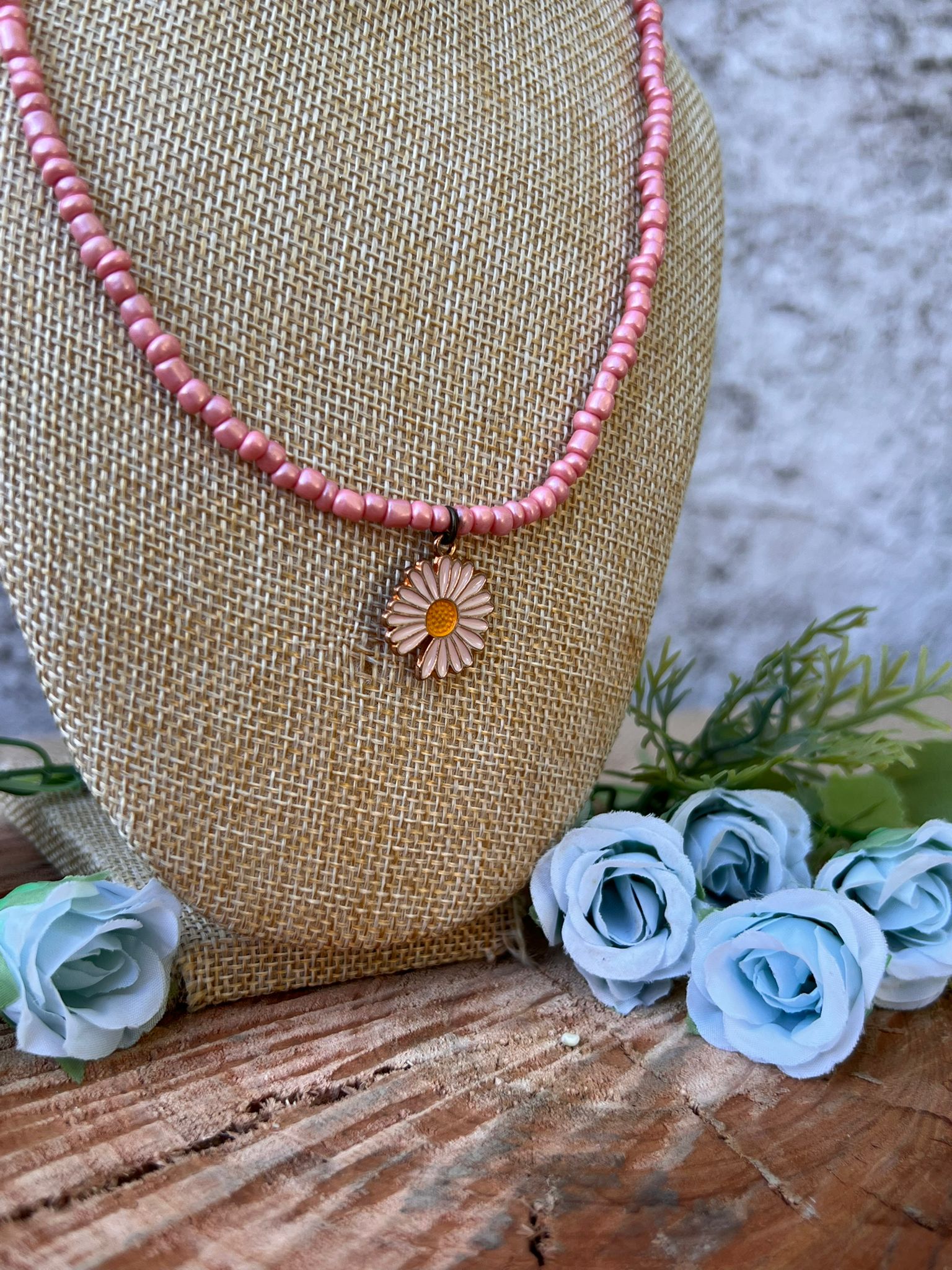 Collar mostacillas con dije de flor.